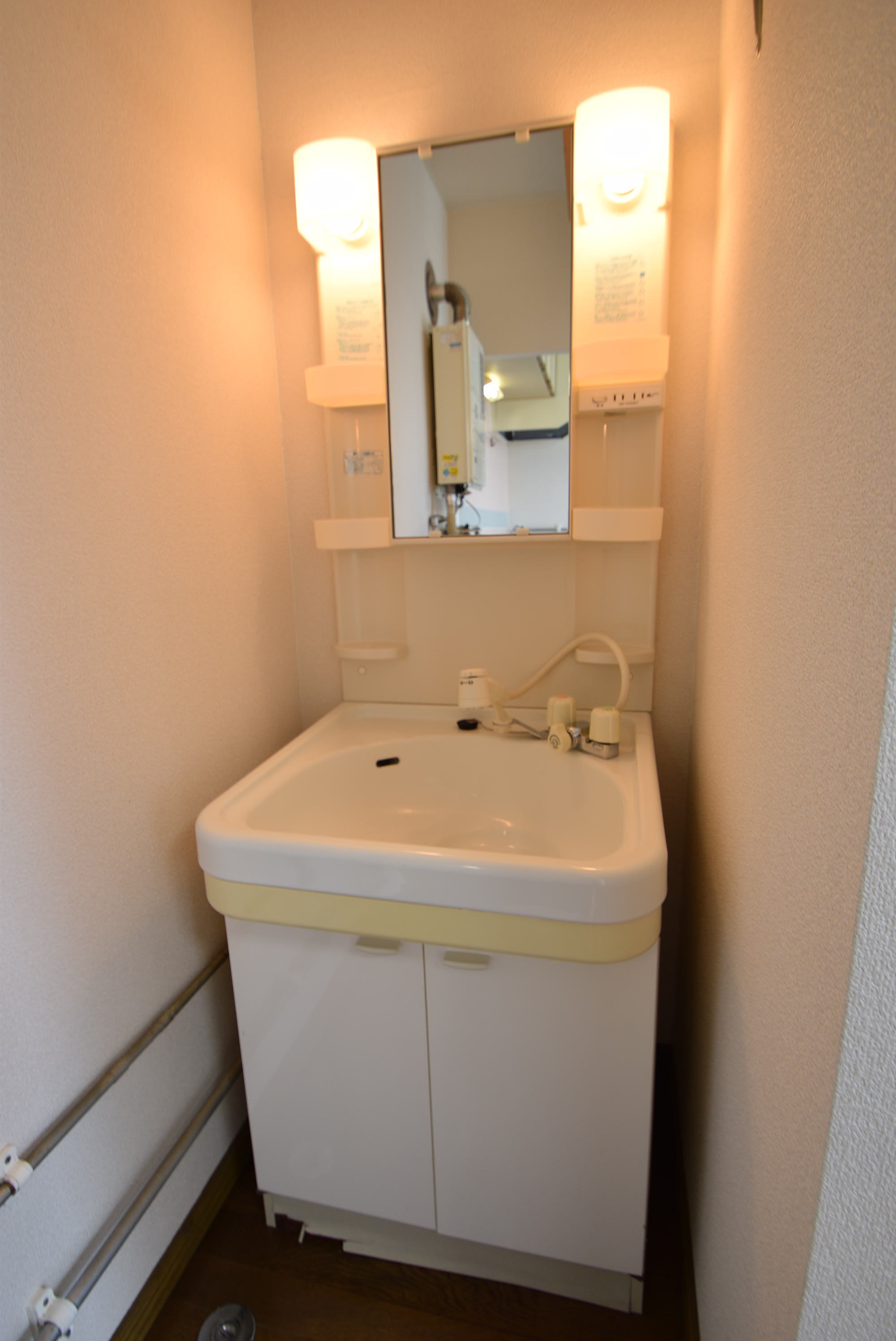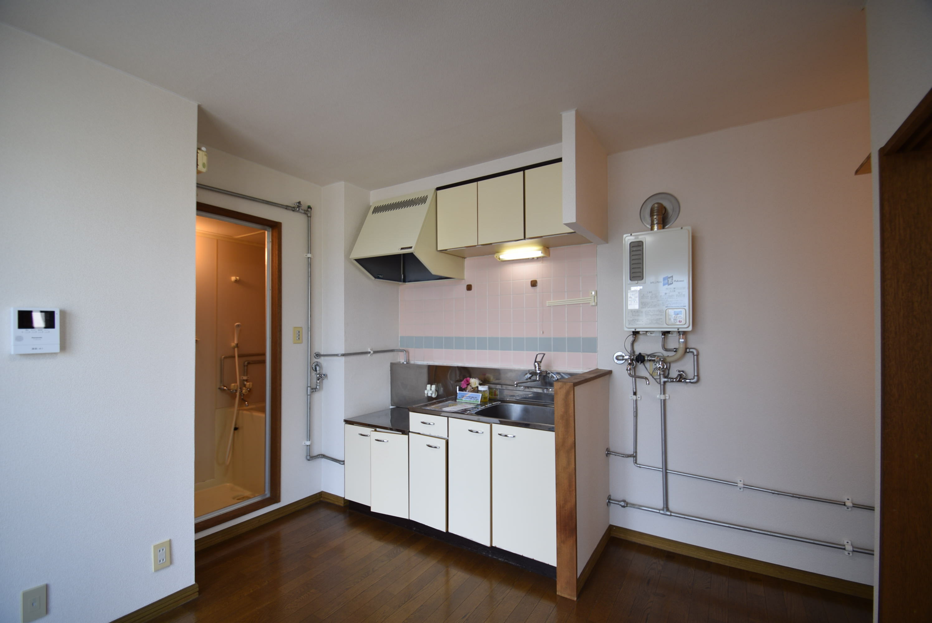 バス・トイレ別、室内洗濯機置き場、モニタ付インターホン、フローリング、給湯(ガス)、シャワー付洗面化粧台、ガスコンロ設置可、押入、冷房、灯油ファンヒーター、シャワー、独立洗面所、郵便受け、照明器具、天然ガス(都市ガス)