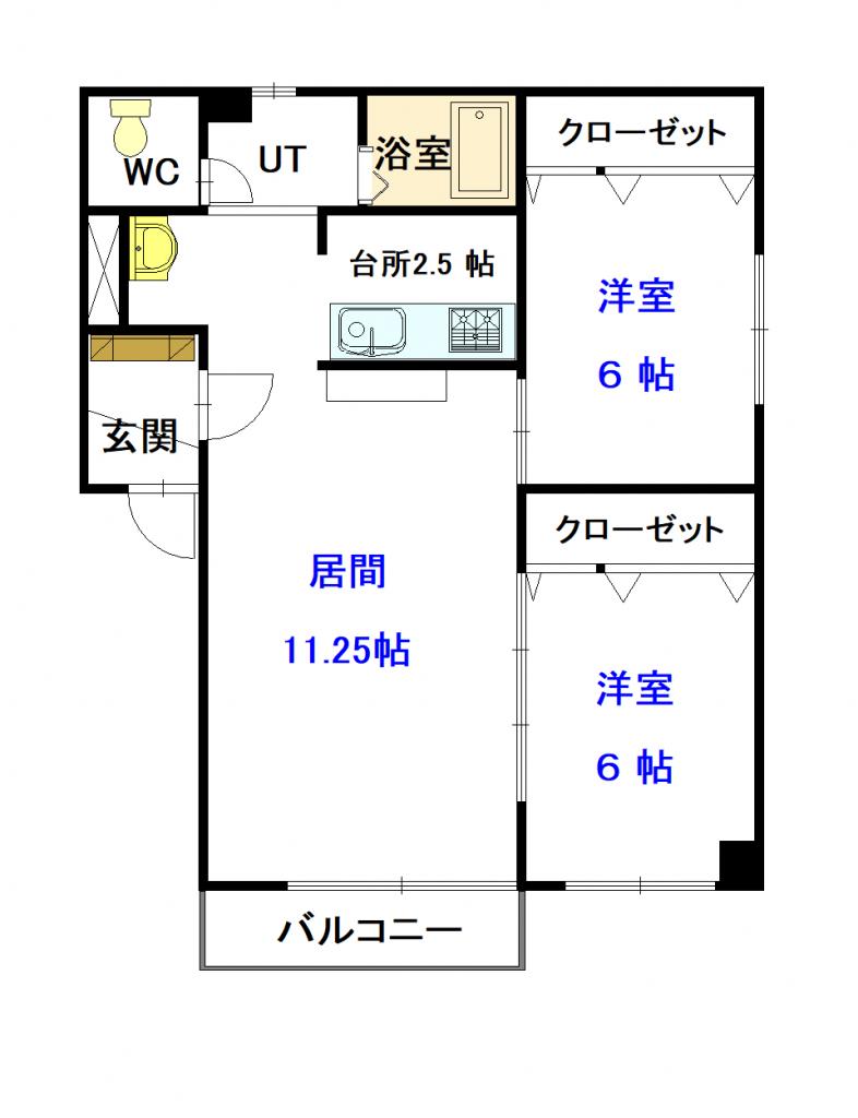 | 間取詳細 | 2.5K×6洋×6洋×11.2LD |