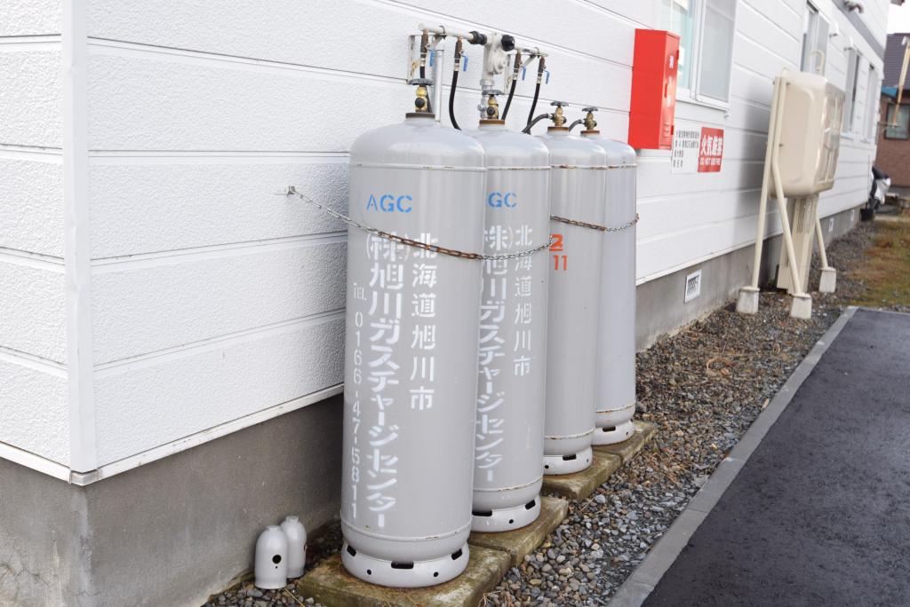 バス・トイレ別、室内洗濯機置き場、モニタ付インターホン、フローリング、給湯(ガス)、シャンプードレッサー、ガスコンロ設置可、押入、灯油ファンヒーター、シャワー、独立洗面所、温水洗浄暖房便座、郵便受け、照明器具、LPG、シューズボックス