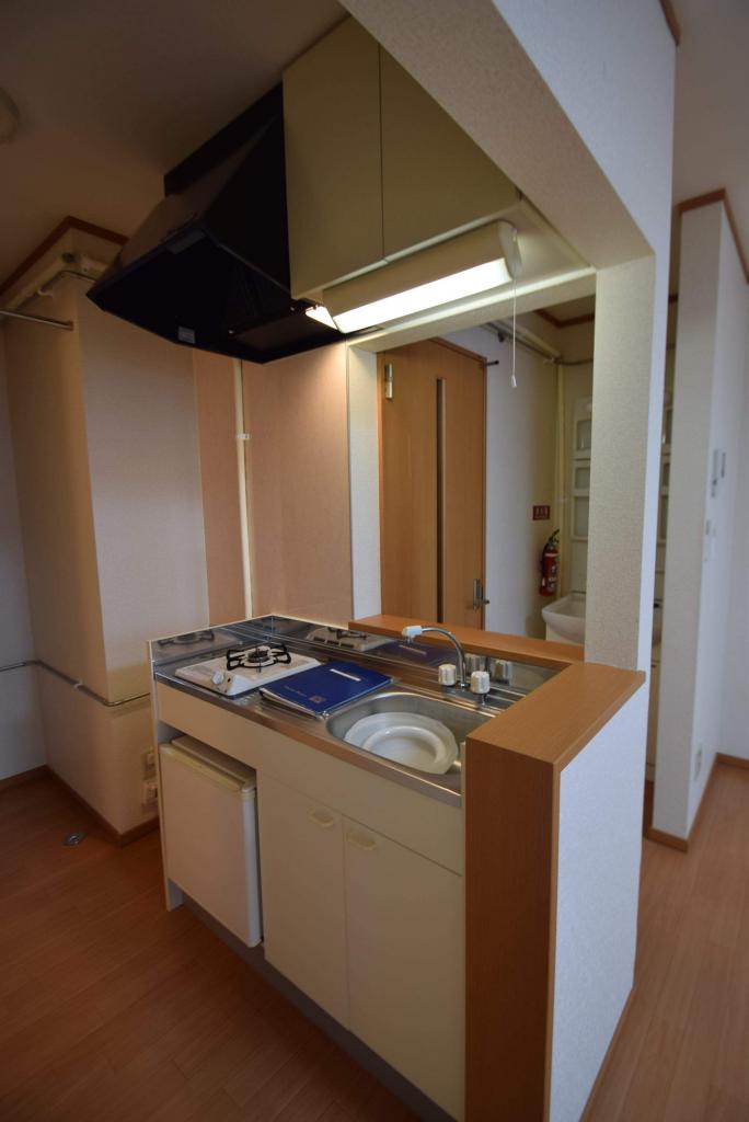| 部屋の特徴・設備 | バス・トイレ別、室内洗濯機置き場、モニタ付インターホン、ガスキッチン、フローリング、給湯(ガス)、BS、システムキッチン、シャワー付洗面化粧台、クローゼット、冷房、灯油ファンヒーター、シャワー、独立洗面所、温水洗浄暖房便座、ゴミ集積場、郵便受け、照明器具、インターネット対応、LPG、シューズボックス | ||