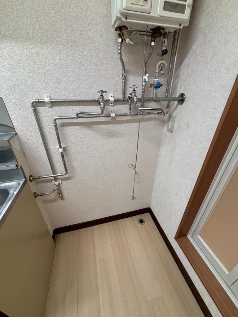 バス・トイレ別、室内洗濯機置き場、モニタ付インターホン、フローリング、給湯(ガス)、ガスコンロ設置可、押入、冷房、灯油ファンヒーター、シャワー、温水洗浄暖房便座、郵便受け、照明器具、LPG、シューズボックス、物置