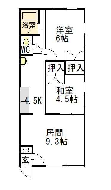 間取詳細 4.5K×4.5和×6洋×9.3LD