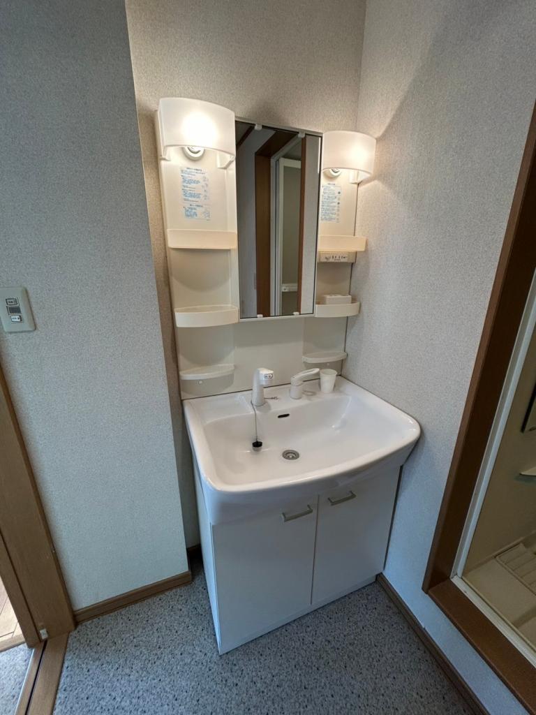 バス・トイレ別、室内洗濯機置き場、モニタ付インターホン、フローリング、給湯(ガス)、シャワー付洗面化粧台、ガスコンロ設置可、押入、灯油ファンヒーター、シャワー、独立洗面所、温水洗浄暖房便座、郵便受け、照明器具、LPG、対面キッチン、シューズボックス