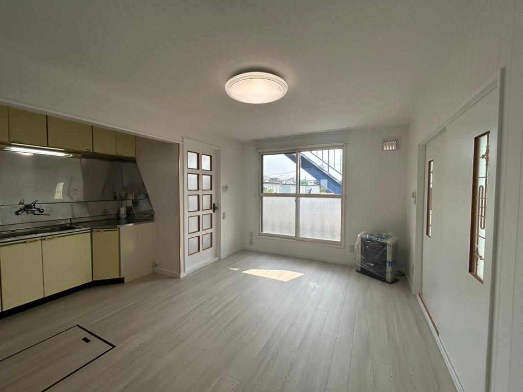 バス・トイレ別、室内洗濯機置き場、モニタ付インターホン、フローリング、給湯(ガス)、ガスコンロ設置可、押入、冷房、灯油ファンヒーター、シャワー、温水洗浄暖房便座、郵便受け、照明器具、LPG、シューズボックス